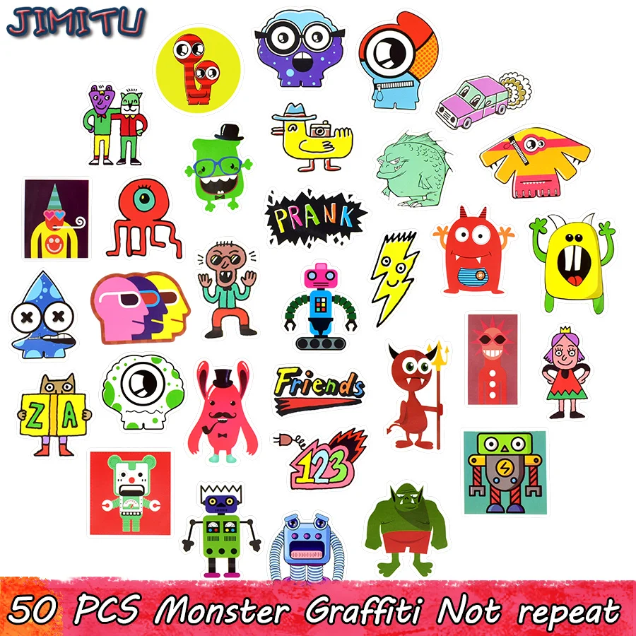 50 Pcs Monster Doodle Stickers Funny Graffiti Cartoon Character Robot Sticker To Diy Luggage Laptop Bicycle Skateboard Guitar Stickers Aliexpress