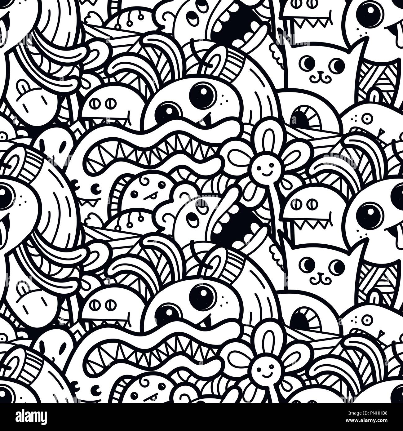 Funny Doodle Monsters Seamless Pattern For Prints Designs And Children Books Vector Illustration For Coloring Pages Stock Vector Image Art Alamy