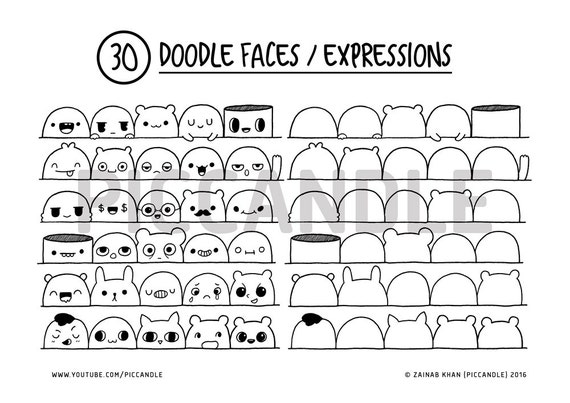 60 Cute Doodle Faces Expressions Printable Practice Sheets Etsy