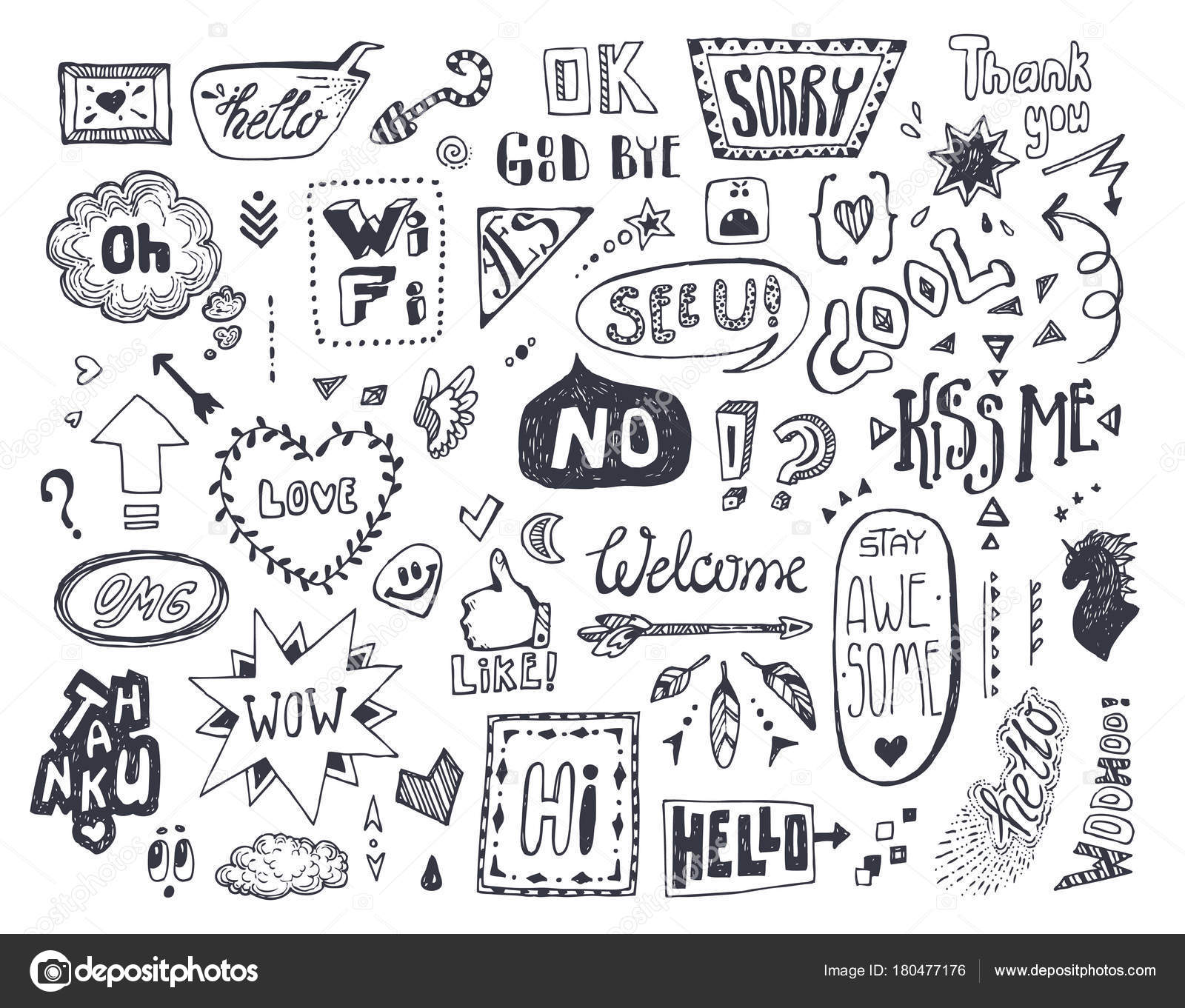 Doodle Calligraphic Funny Catchwords Set For Romantic Design Royalty Free Cliparts Vectors And Stock Illustration Image 67376486