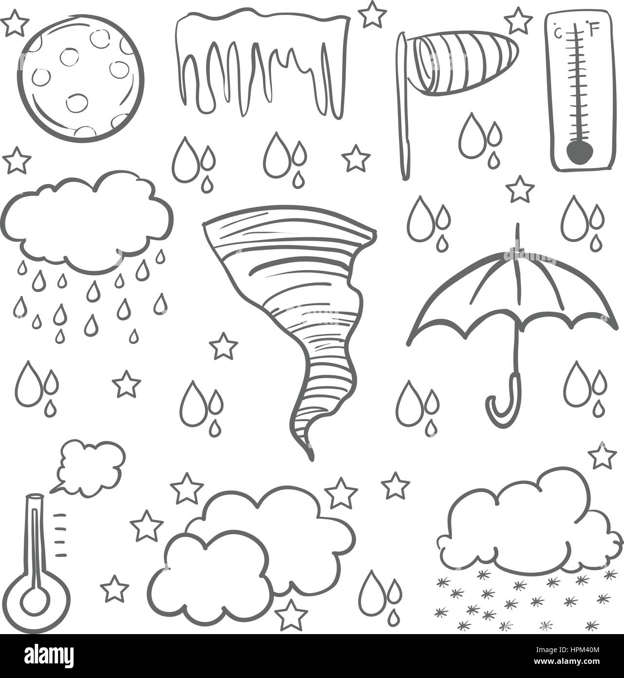 Doodle Of Weather With Cloud Rain Umbrella Stock Vector Image Art Alamy