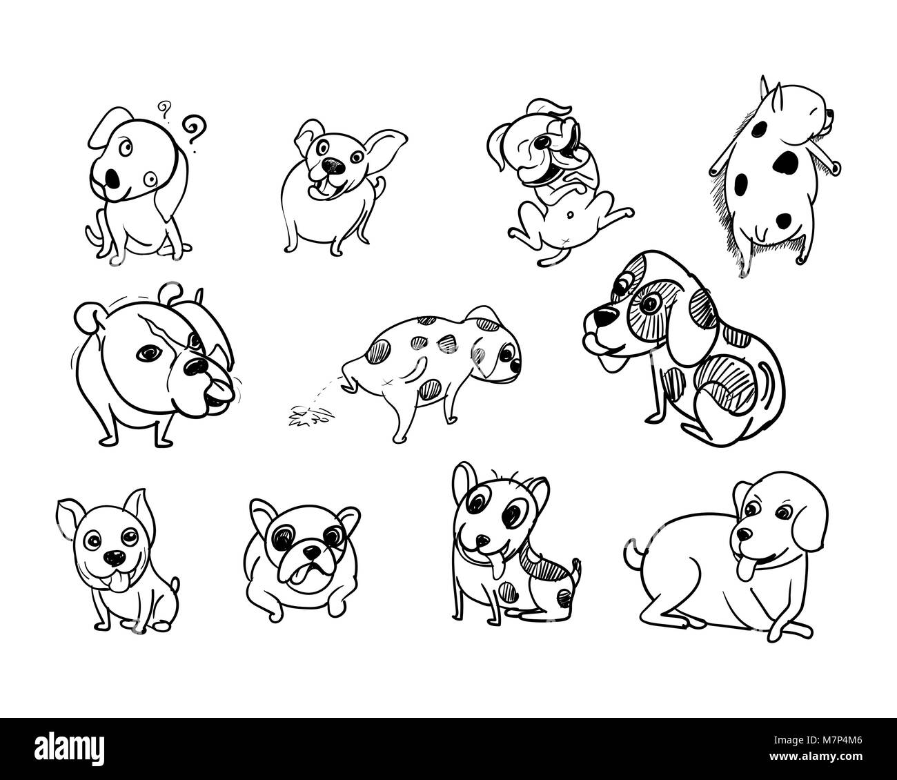 Drawing Doodle Set Of Dog On White Background Stock Vector Image Art Alamy