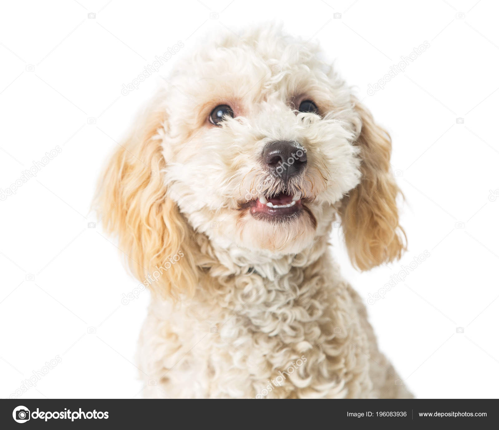 White Mixed Breed Poodle Dog Happy Expression Looking Camera Isolated Stock Photo C Adogslifephoto 196083936