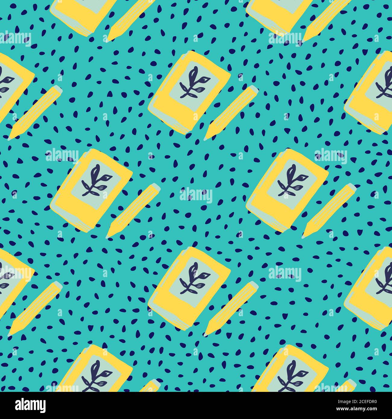 Bright Diary Book Ornament Seamless Pattern Yellow Doodle Notebook Elements On Blue Dotted Background Designed For Wallpaper Textile Wrapping Paper Fabric Print Vector Illustration Stock Vector Image Art Alamy