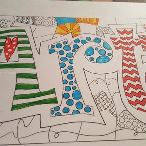 Instant Download Coloring Page Love Word Art Print Zentangle Etsy