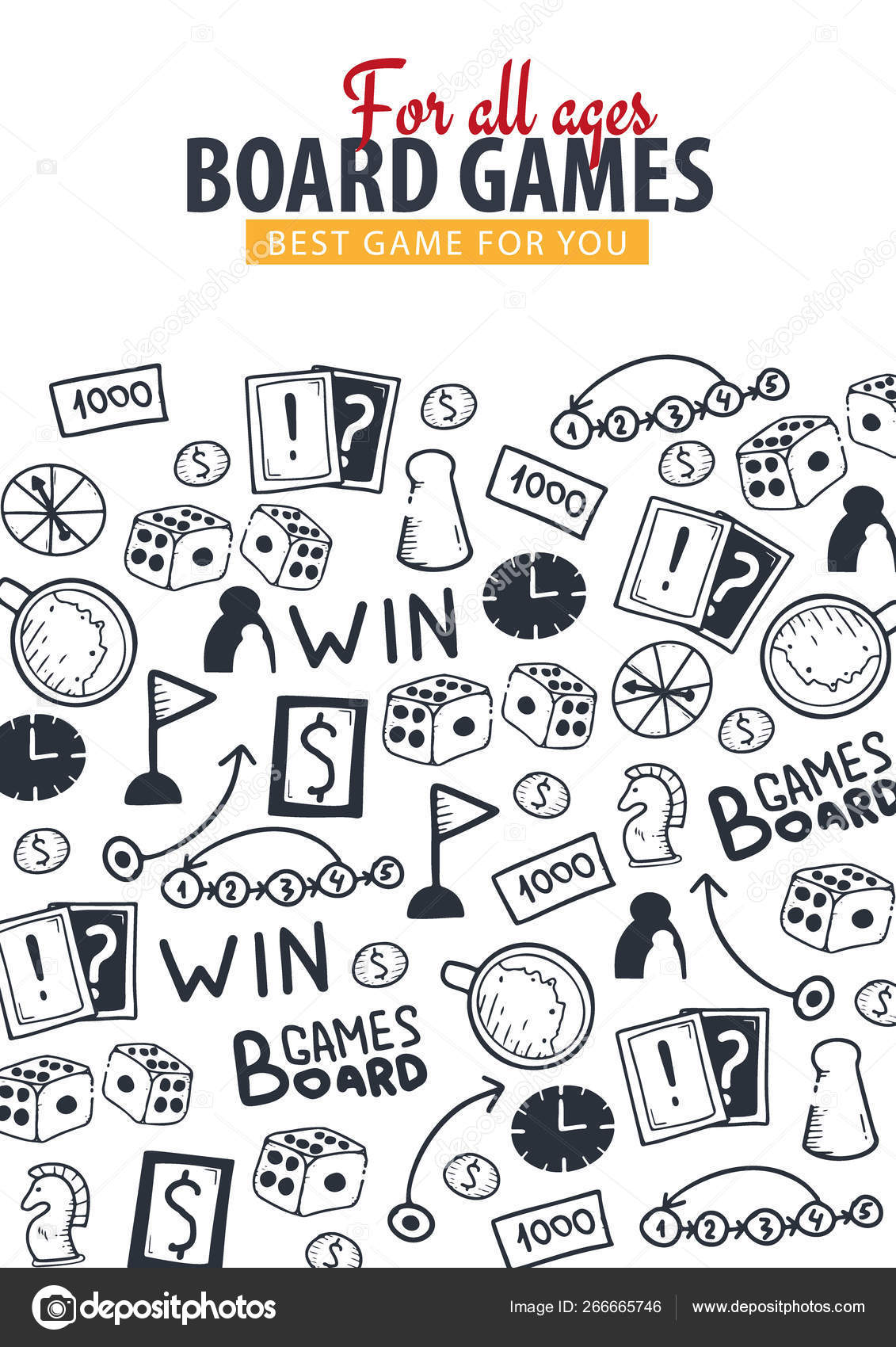 Board Games Banners For All Ages Hand Draw Doodle Background Vector Illustration Stock Vector C Leo Design 266665078